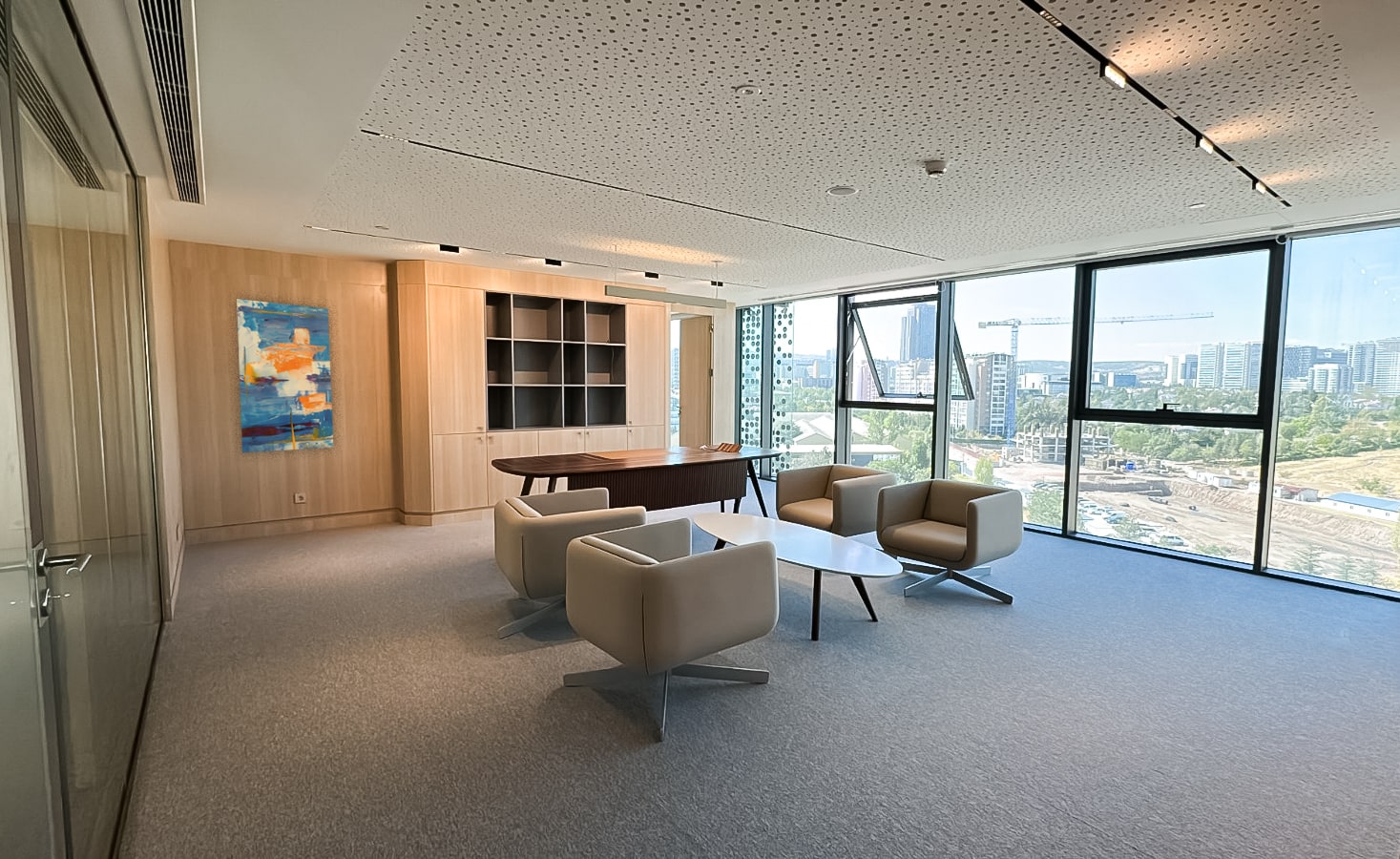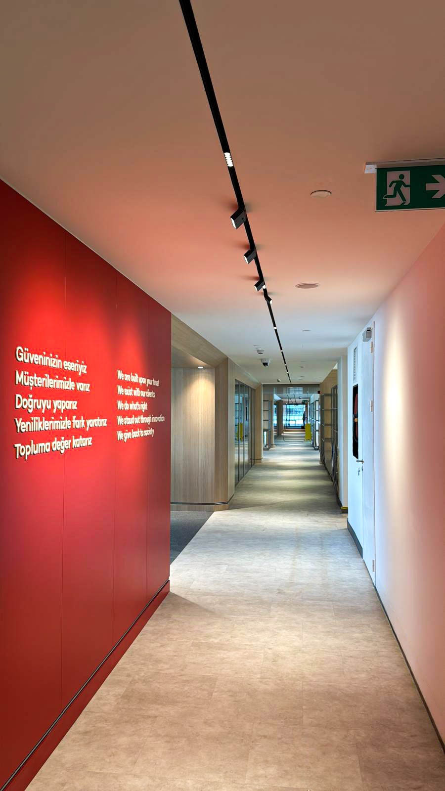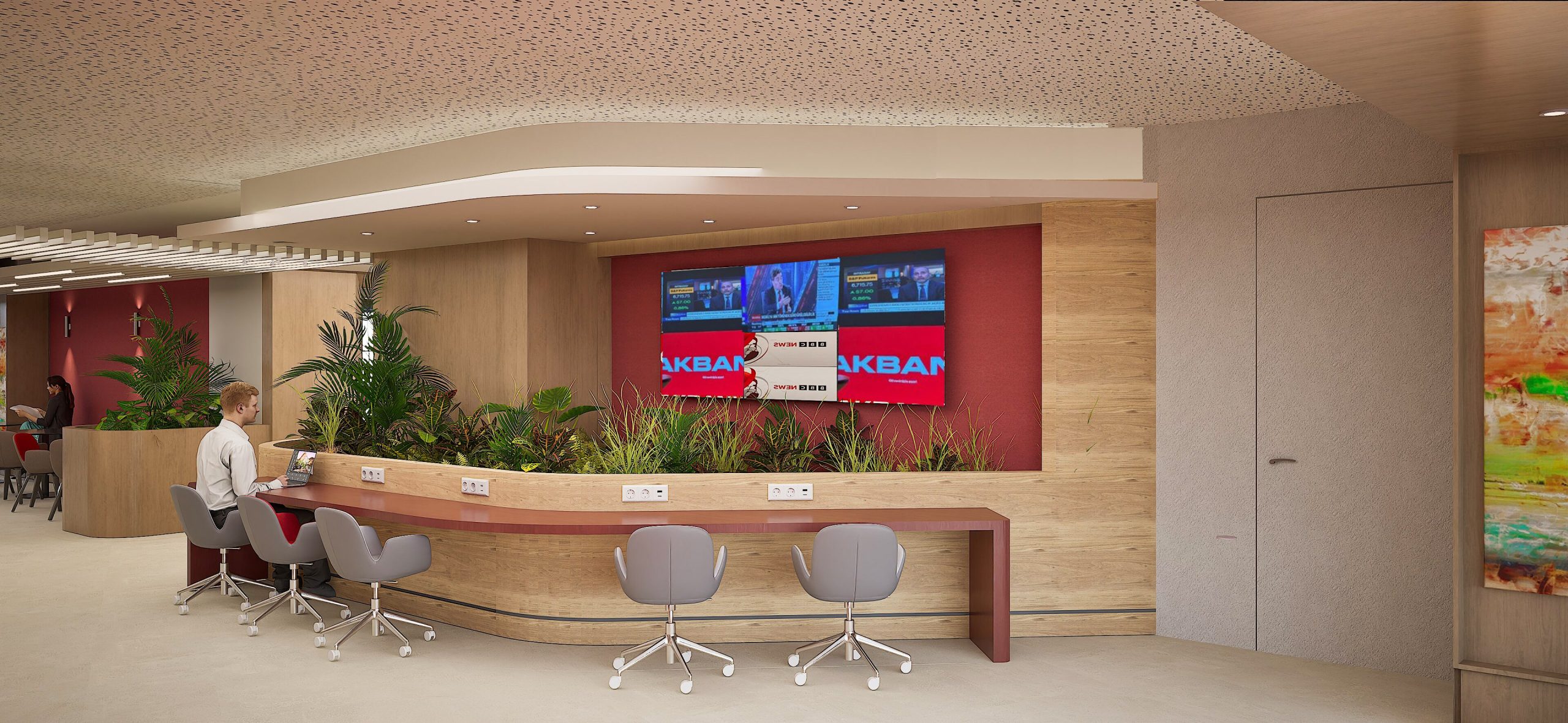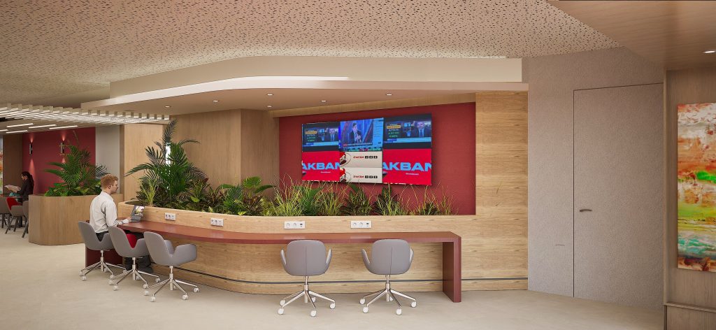 Akbank’ın operasyonel süreçlerinin kesintisiz olarak devam etmesi adına tasarlanan bu mekan; kurumsal kimliği her detayında yansıtacak şekilde projelendirilmiştir. İşlevselliğin sadelikle buluştuğu bu tasarımda, kullanıcı konforu ön plandadır. Bu anlayış doğrultusunda, işlevsel alanlar ile estetik unsurlar dengeli bir şekilde bir araya getirilmiştir.