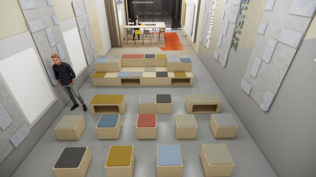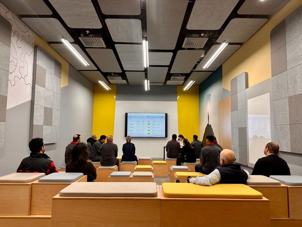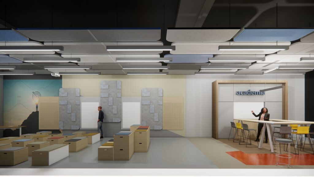 Bu projede; fabrika bünyesinde kullanılmayan âtıl bir alan, eğitim salonuna dönüştürülmüştür. Alan ,hem kalabalık eğitimlerin düzenlenebilmesi hem de küçük ekiplerin günlük toplantılarını gerçekleştirebilmesi için esnek bir yapı ile tasarlanmıştır. Bu esnek yaklaşım ile birlikte, mekânda kullanılan renkler ve malzemeler de kullanıcıların motivasyonunu artıracak şekilde seçilmiş, işlevselliğin yanı sıra sıcak ve davetkar bir atmosfer oluşturulmuştur.